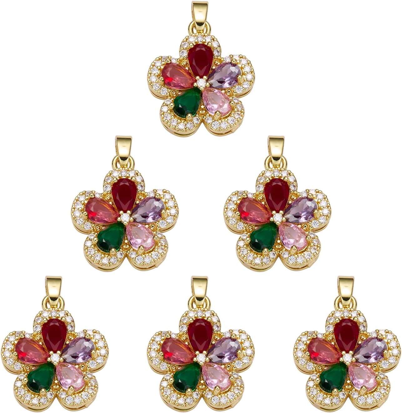 Flower Charms for Jewelry Making Brass Micro Pave Cubic Zirconia Enamel Pendants Charms for DIY Crafting Necklace Earring Bracelet Supplies