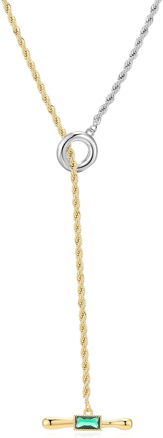 Y Chain Necklace for Women, Trendy 14k Gold Plated/Silver Y-Shaped Chain Pendant Necklace Gold Jewelry for Women