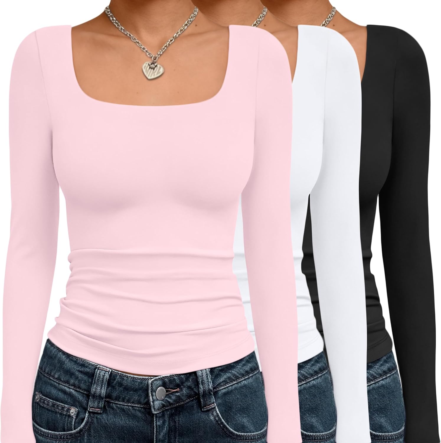AUTOMET 3 Pack Womens Long Sleeve Shirts Fall Fashion Scoop Neck Crop Tops Basic Layer Slim Fit Y2K Clothes OEKO-TEX STANDARD 100