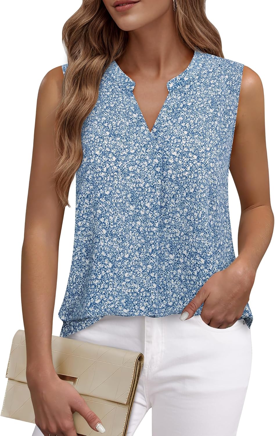 Timeson Women's Chiffon V Neck Sleeveless Blouse Tops Office Work Shirts