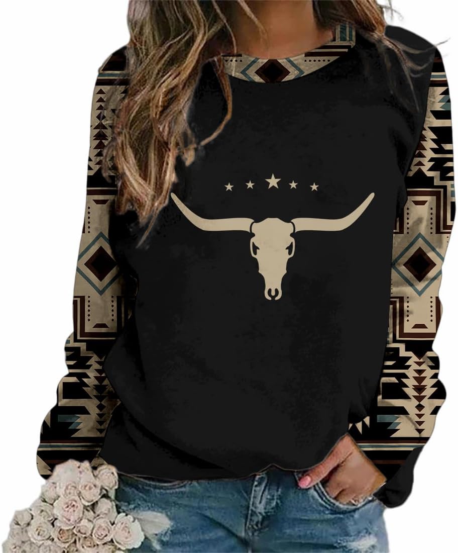 LOAIHA Western Sweatshirts for Women Native American Cowgirl Hoodies Aztec Shirts Long Sleeve Tops Blouses Fall Outfit