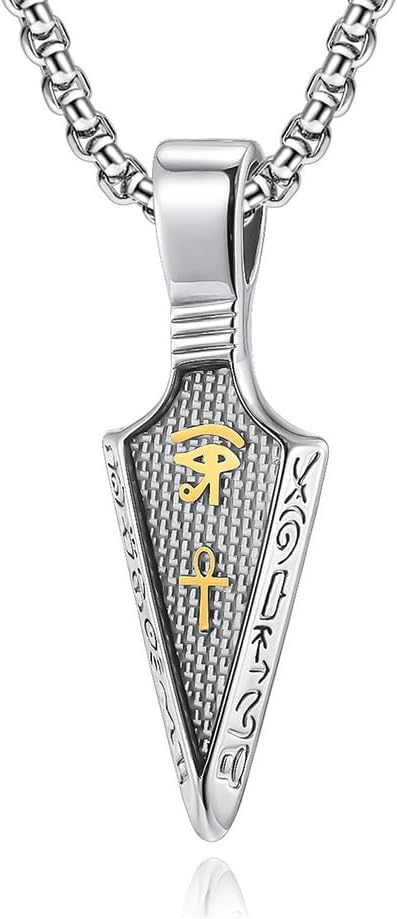 Eye of Horus Arrowhead Necklace Egyptian Protection Ankh Cross Amulet Pendant on 24+2″ Stainless Steel Adjustable Chain