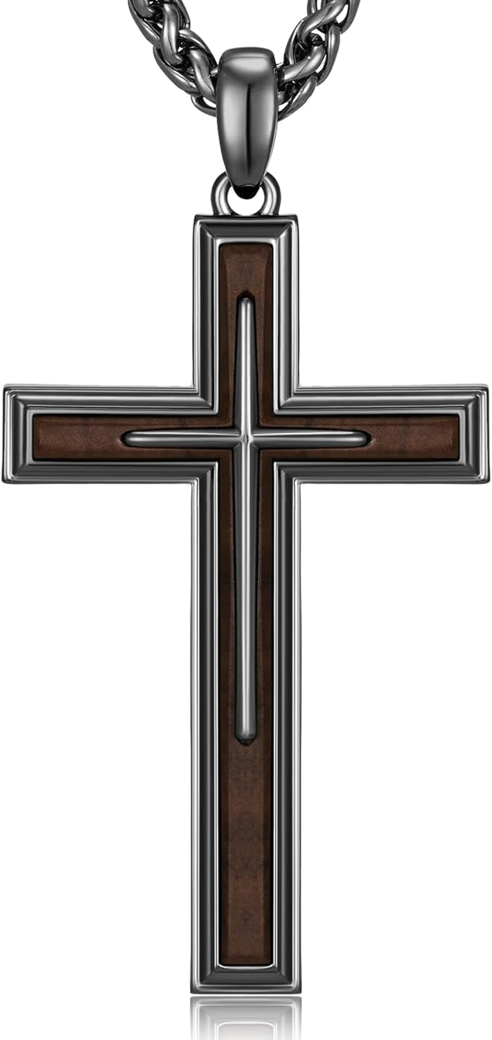 NORBU Wooden Cross Necklace for Men, Mens Black Cross Necklaces Natural Wood Cross Pendant, Christian Jewelry Religious Gifts for Him Easter Birthday Christmas