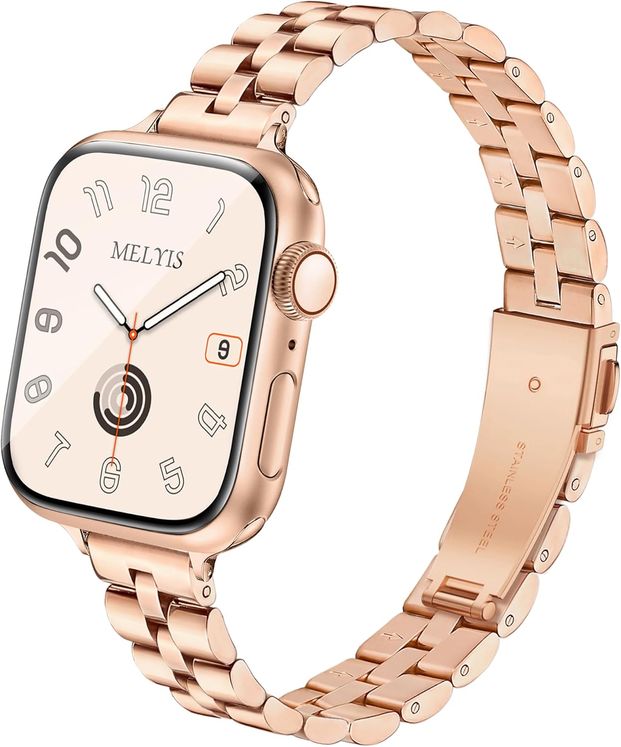 Slim Metal Band Fits Apple Watch Bands 42mm(Series 11/10) 40mm 41mm 38mm, Stainless Steel iWatch Bands for Women, Dressy Band for Apple Watch Series 11 10 9 SE 8 7 6 5 4 3, Rose Gold