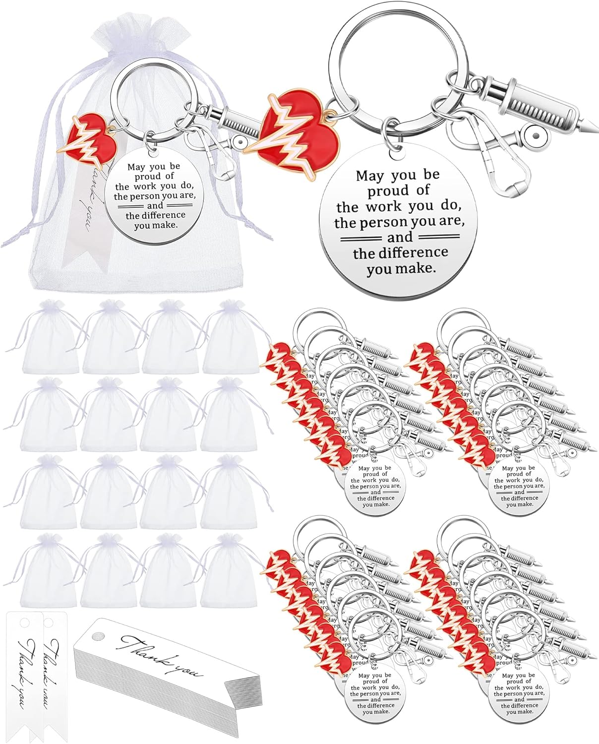 Sureio 72 Pcs Nurse Appreciation Gifts Include 24 Nurse Keychain 24 Organza Bag and 24 Tag Thank You Gifts for Nurse Day