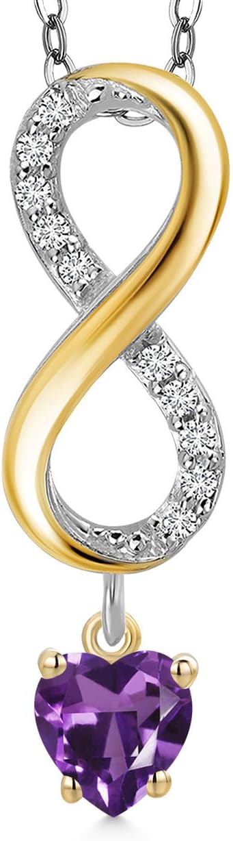 Gem Stone King 925 Silver and 10K Yellow Gold Purple Amethyst and Lab Grown Diamond Pendant Necklace for Women | 0.92 Cttw | Gemstone February Birthstone | Heart Shape 5MM | With 18 Inch Silver Chain