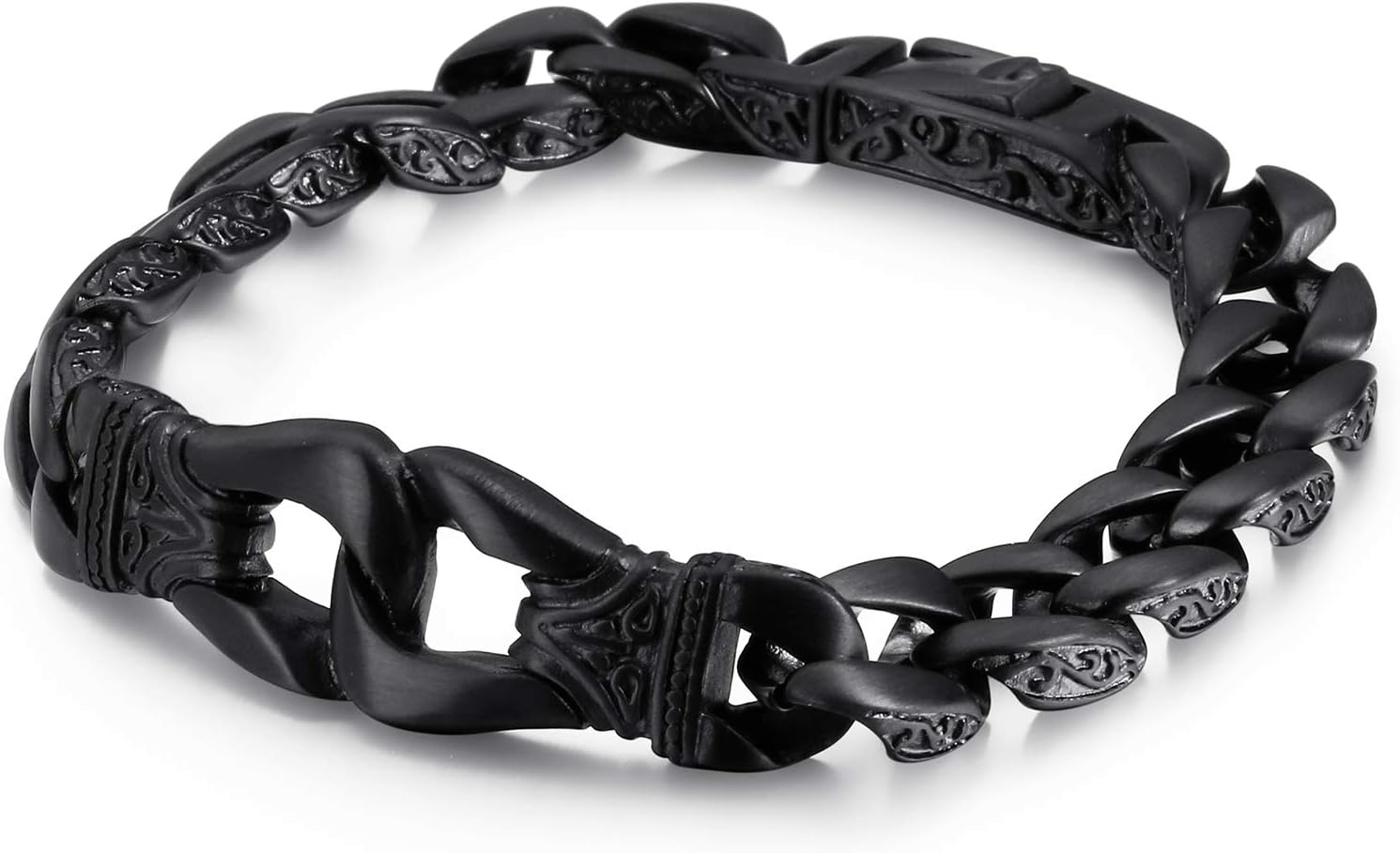 Men Stainless Steel Cuban Link Chain Bracelet,Hip Hop Tribal Tattoo Pattern Bracelet with Spring Box Clasp