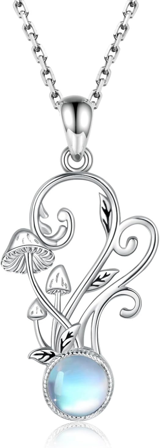 Sariel Moonstone Mushroom Necklace for Women - 925 Sterling Silver Mushroom Themed Gifts Magical Mushrooms Jewelry