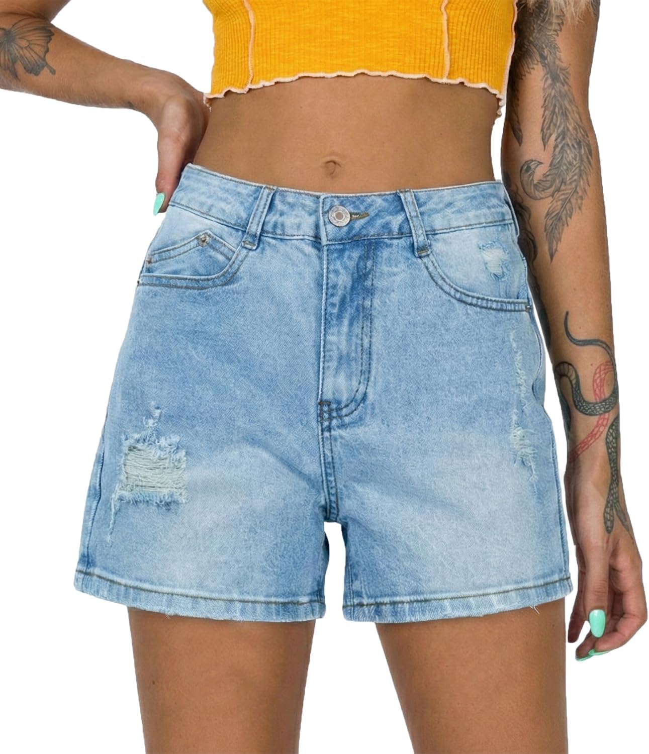 onlypuff Women Ripped Denim Shorts Distressed Mid Rise Stretchy Casual Jean Shorts