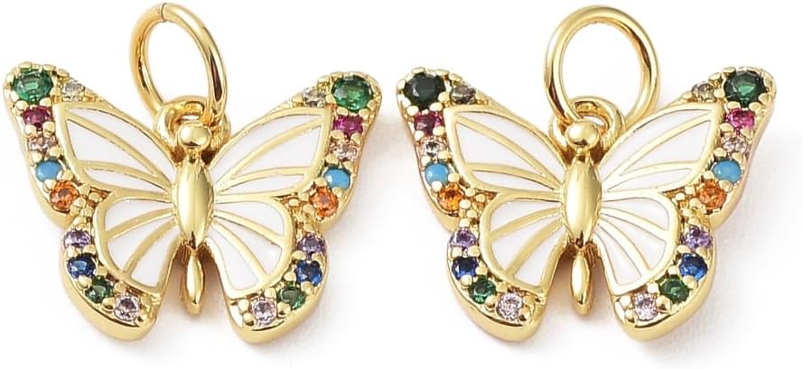 10Pcs Cubic Zirconia Butterfly Charms Brass Animal Insect Charms Pendants for Necklace Earring Bracelet Crafting
