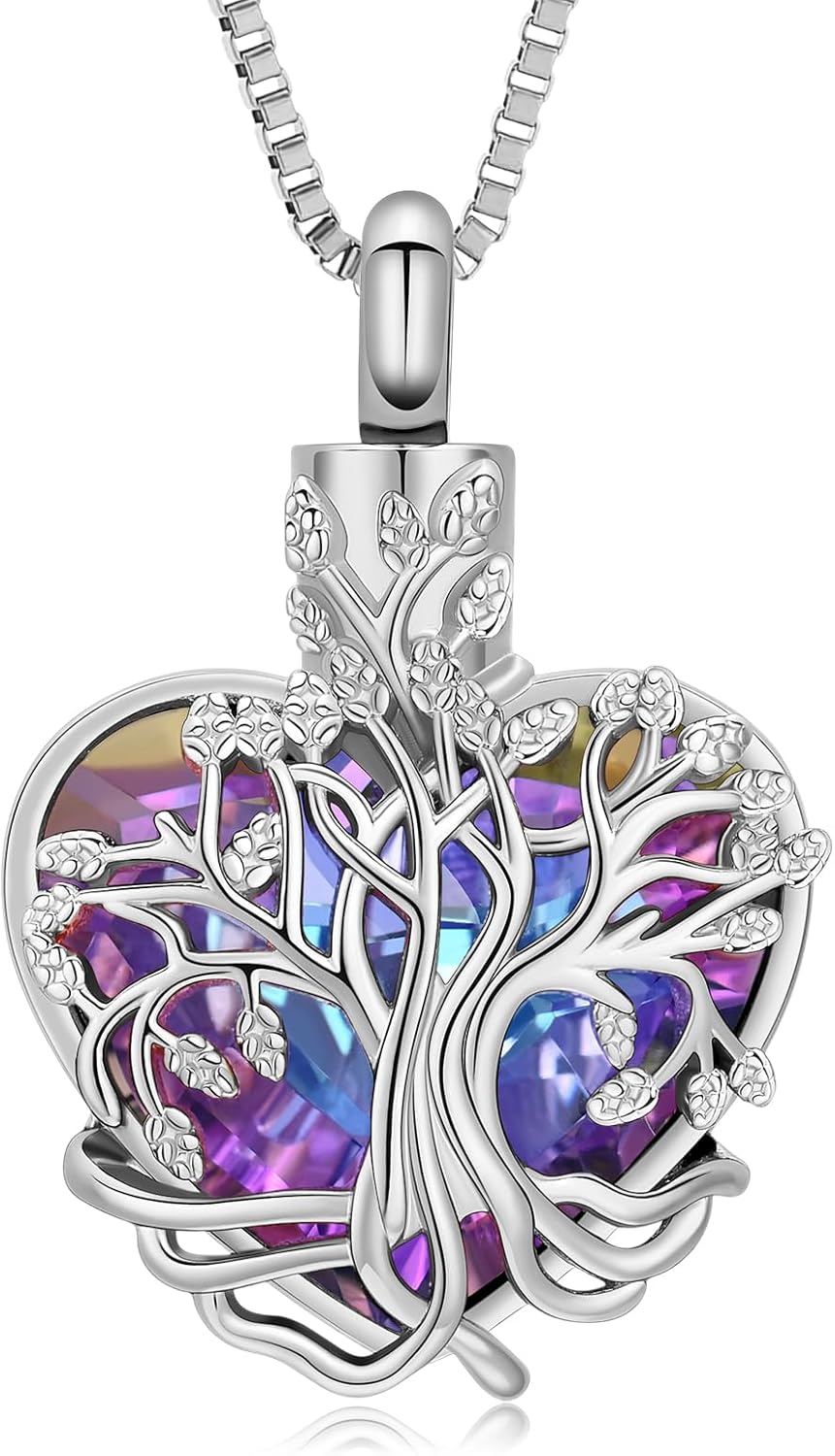 XSMZB Tree of Life Urn Necklace for Women Crystal Heart Cremation Jewelry for Ashes Keepsake Ashes Pendant for Human Pet