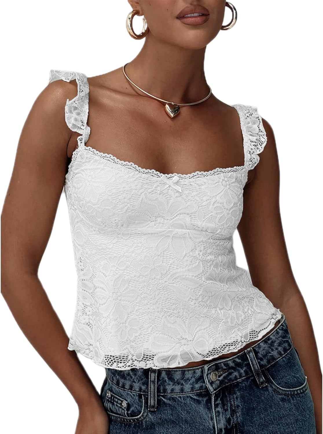Women Y2k Lace Tank Tops Sleeveless Spaghetti Strap Square Neck Crop Top Vintage Going Out Shirts Streetwear