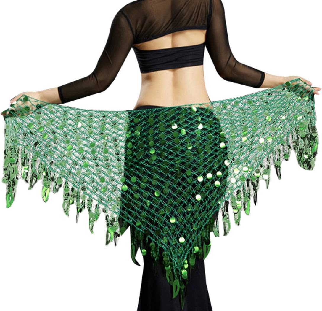 Aivtalk Women Belly Dance Hip Scarf Sequins Mesh Triangle Wrap Skirts