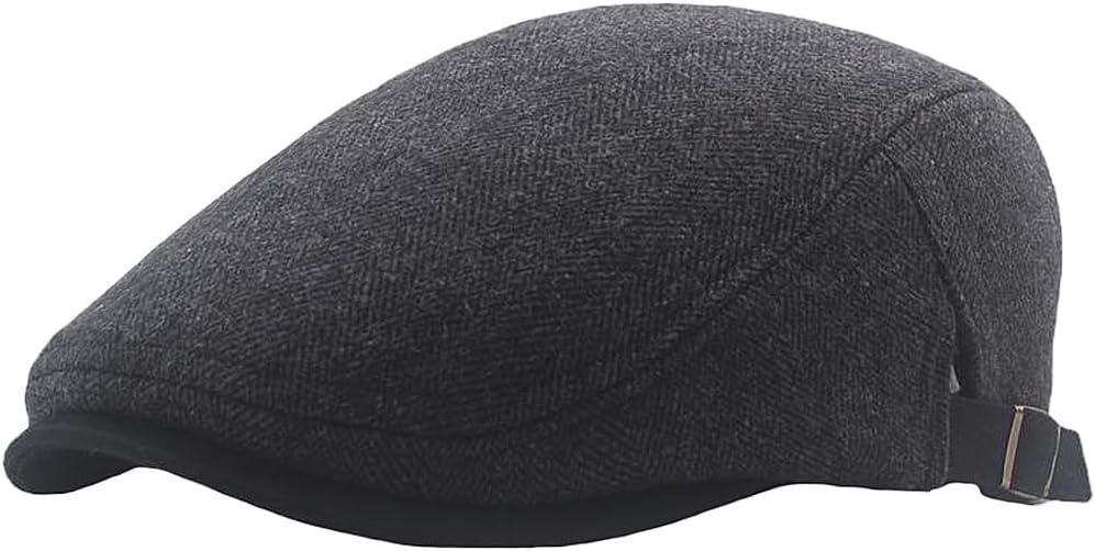 Mens Herringbone Tweed Newsboy Cap Flat Ivy Gatsby Hat Adjustable Cabbie Cap for Women