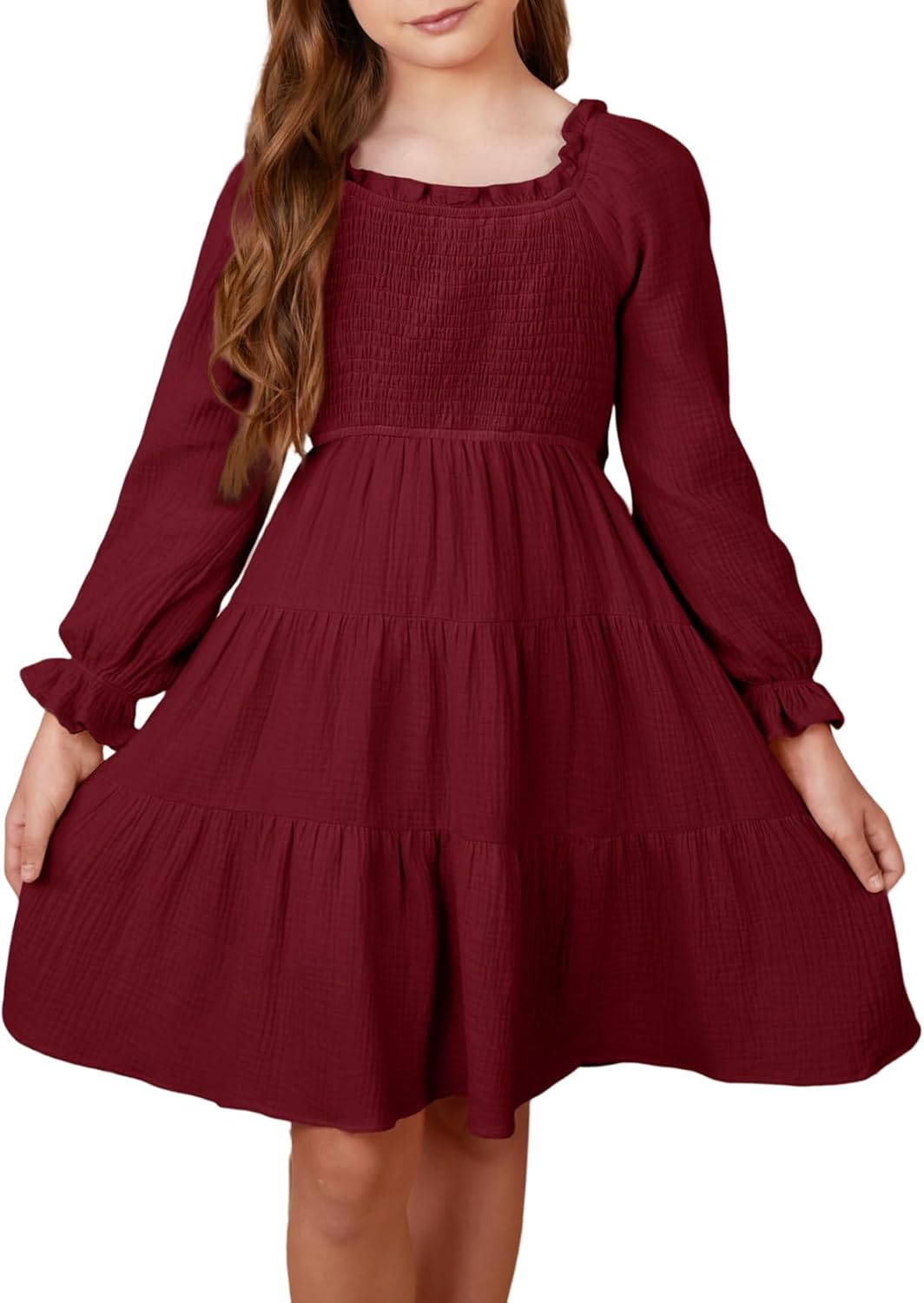 blibean Girls Cotton Long Sleeve Dresses Ruffled Boho Tiered Dress Size 6-15 Years
