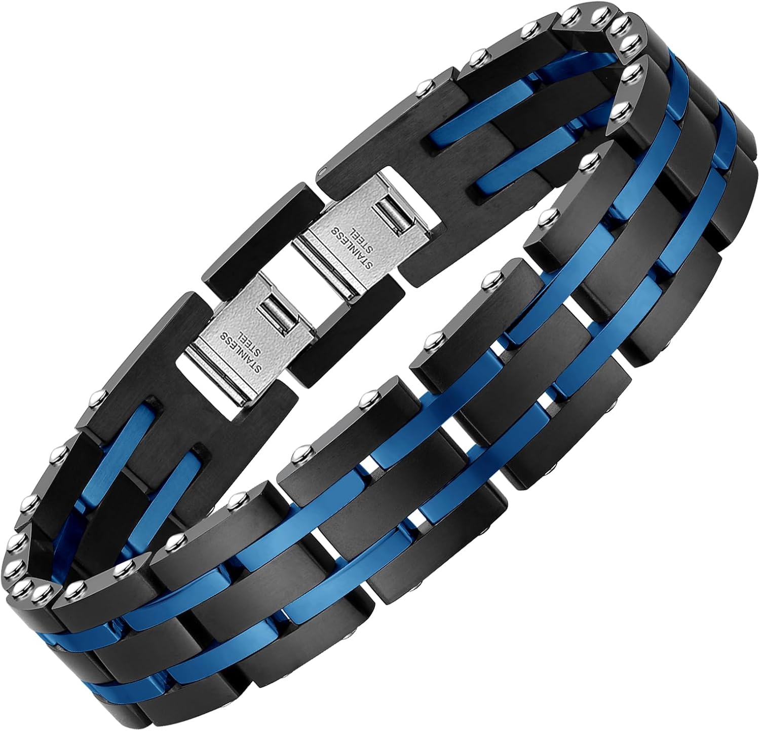 Zillaly mens bracelet Surgical Grade Steel Men's Wide Link Stylish Bracelets for Men, Adjustable - 3 Colors to Choose from – men's bracelets