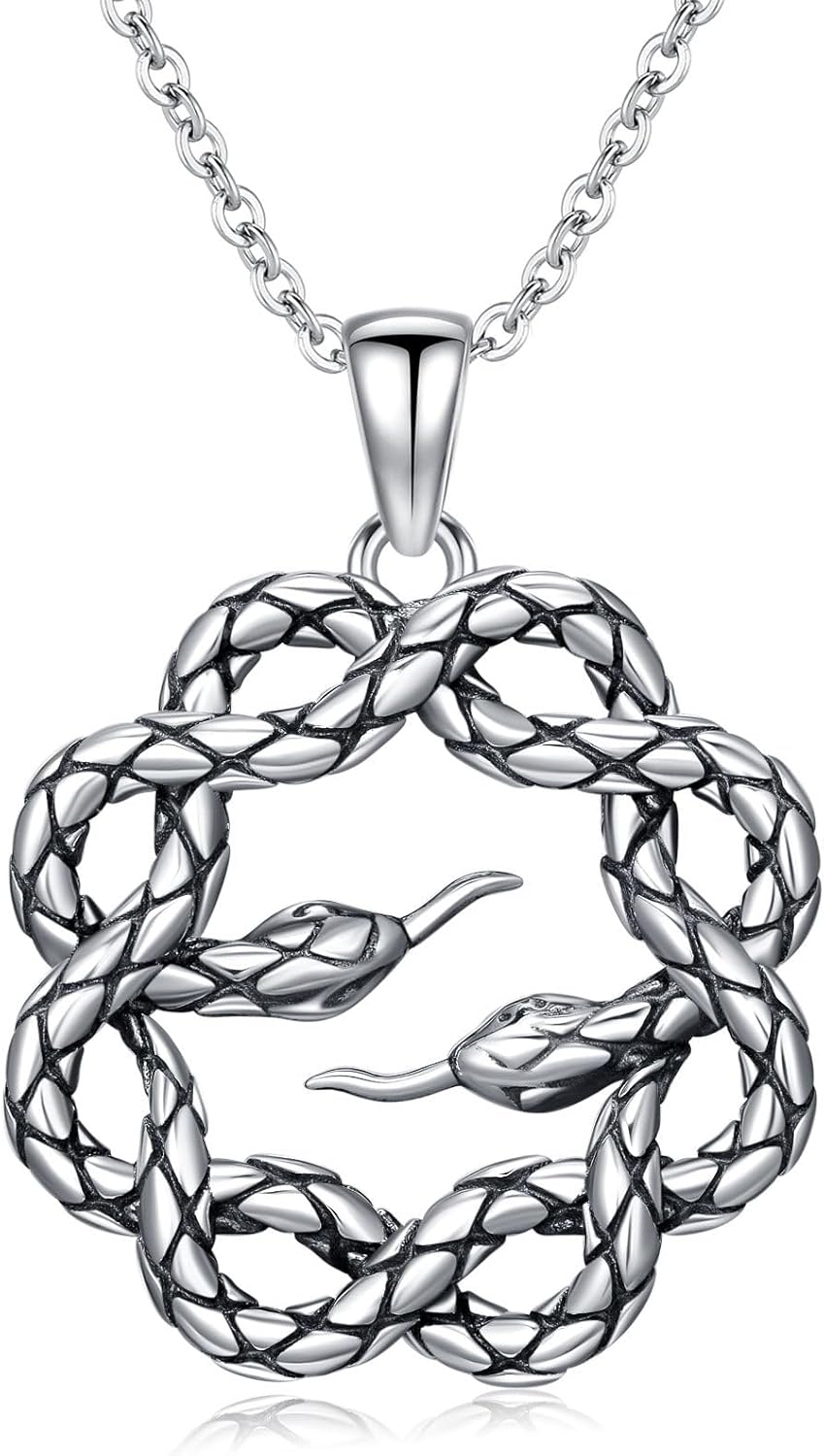 Snake Necklace 925 Sterling Silver Mysterious Snake Pendant Necklace Gothic Necklace Snake Jewelry Gift for Women Men