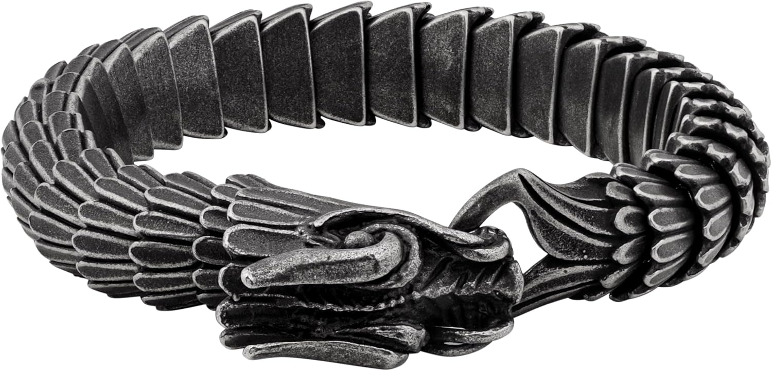 HAQUIL Viking Dragon Bracelet, Antique Oxidized Steel Ouroboros Jormungandr Link Bracelet, Viking Jewelry Gift for Men