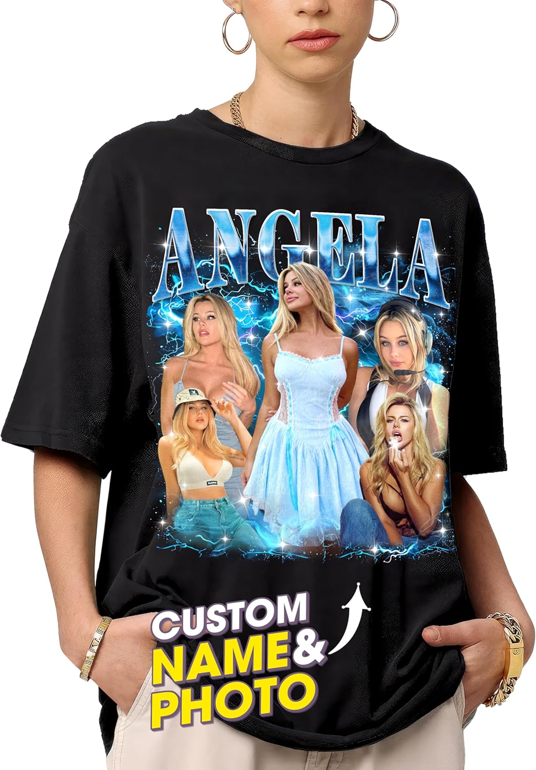 Mit & Mia Custom Bootleg Rap Tee Shirt for Boyfriend Girlfriend Custom Face Tshirt Vintage Graphic Shirt Gift Idea Birthday
