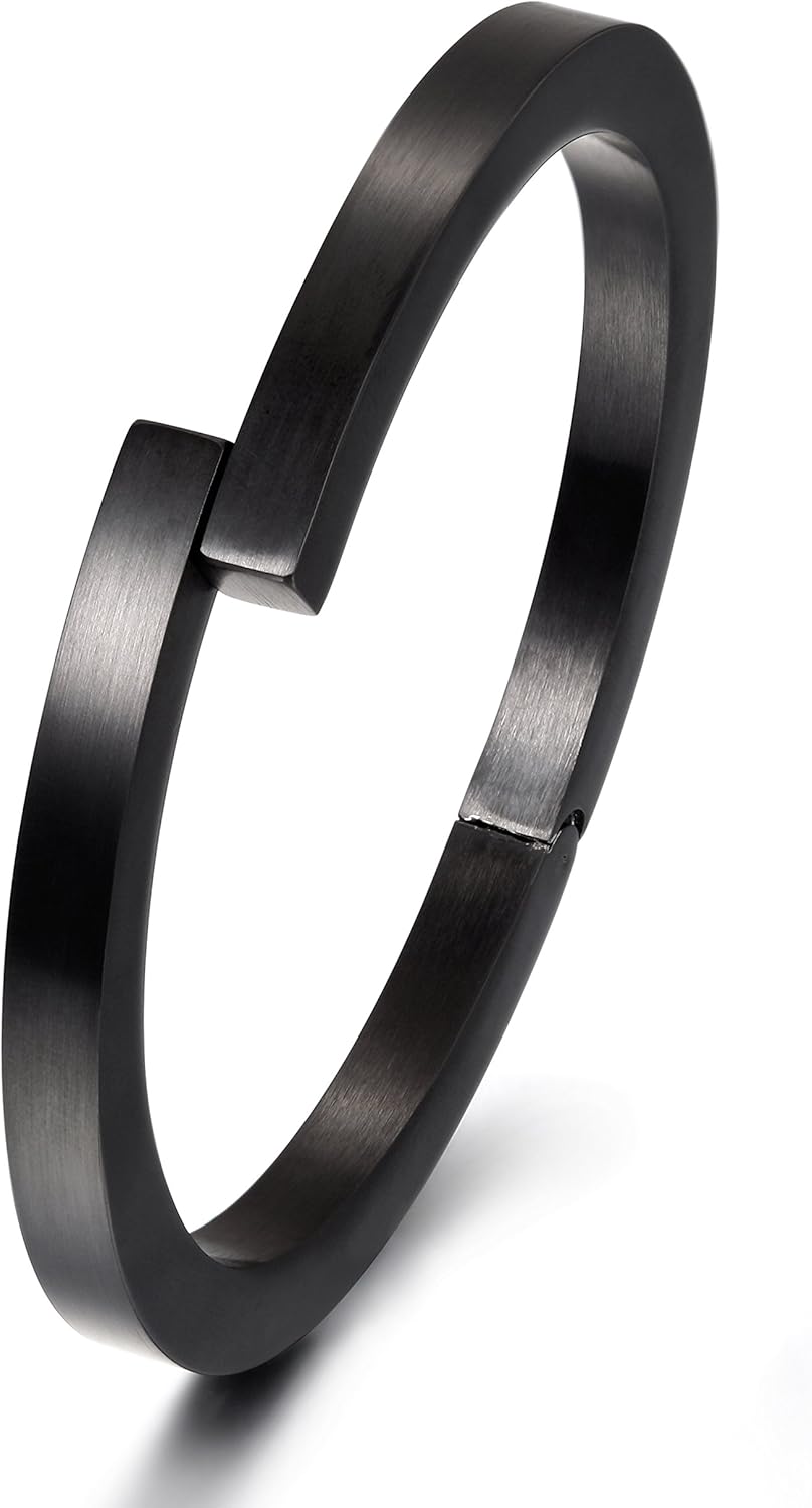 Silver Men's Cuff Bracelets, Black Magnetic Clasps Bangle Bracelet for Men,14K Gold Stainless Steel Metal Cool Antique Retro Open Bracelet for Father Dad Papa, 6.5"-8.0" Inner Circ.