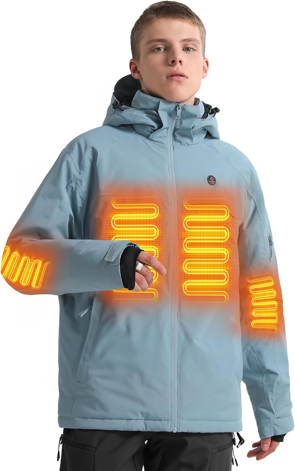 ANTARCTICA GEAR Heated Jacket, Ski Jacket Coat, With 12V/16000mAh Battery Pack, 5 Areas Heating Thicken Men Winter Coat