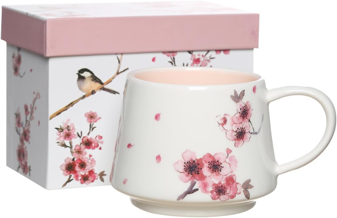 Topadorn Ceramic Coffee Mug, 12 oz Porcelain Tea Cup with Handle,Holiday and Birthday Gift for Coffee Milk Tea Lovers, Plum Blossom Mug with Gift Box, Luxurious Cups for Office and Home