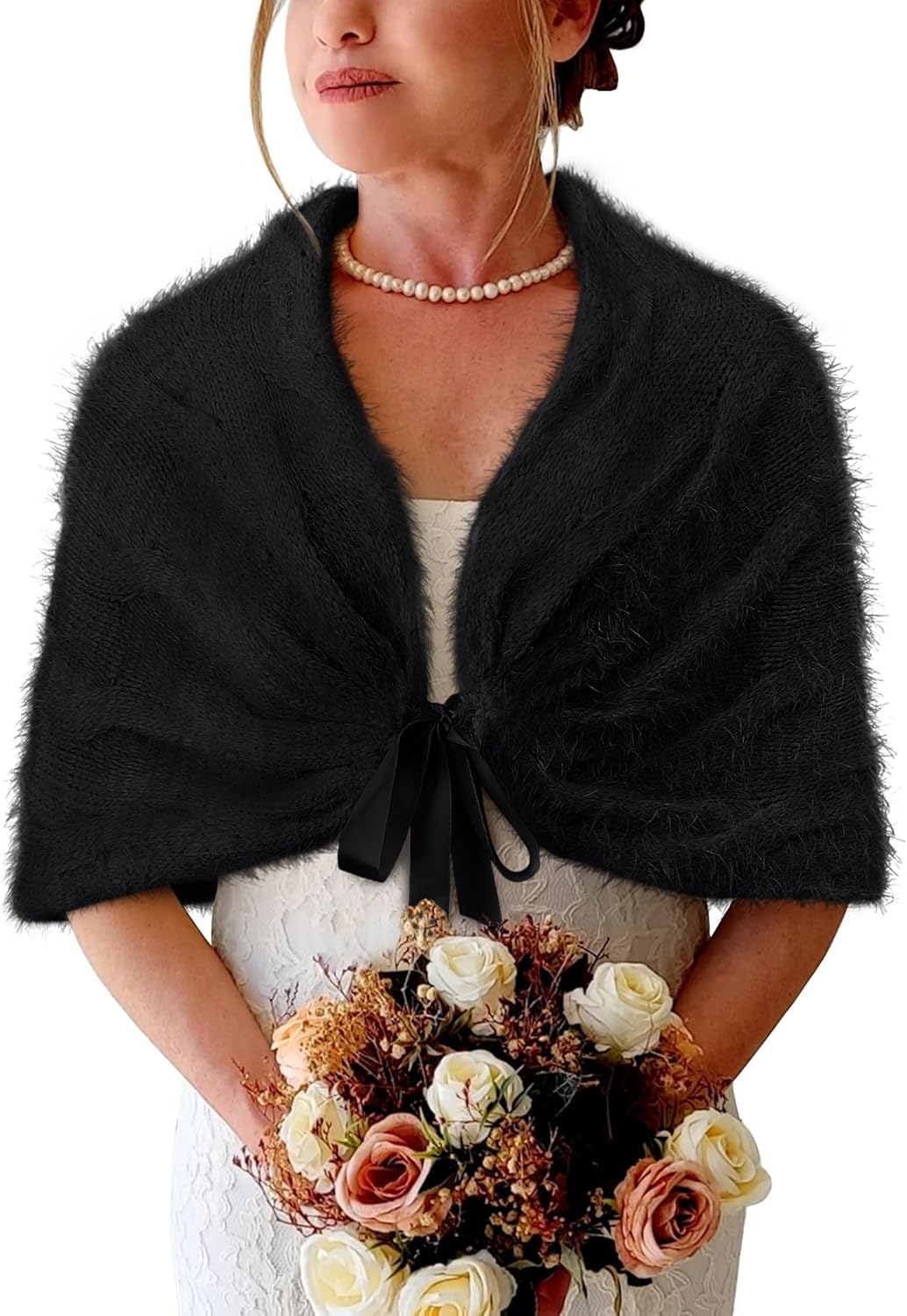 BB&KK Womens Knitted Shawl Wraps Winter Bridal Wedding Stole Shrug Party Shoulder Cream Scarf Wrap Warm Dress Cover Up