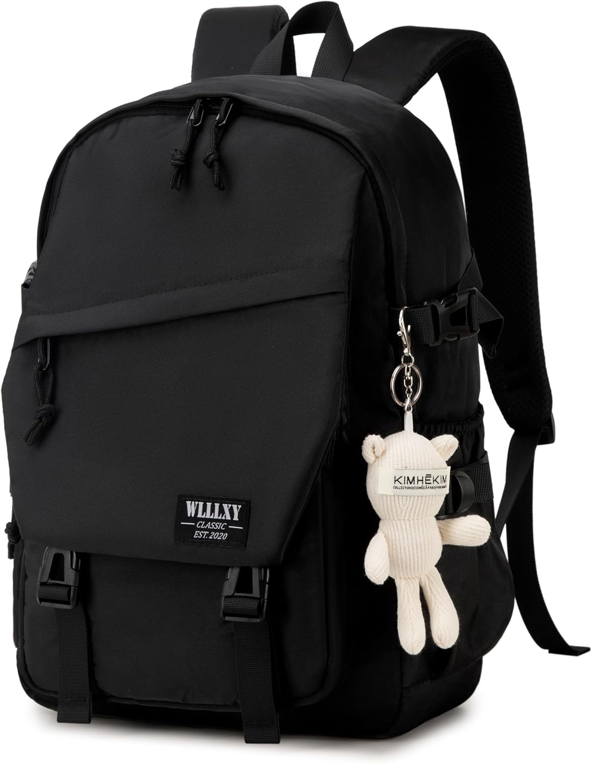 - 【Large Size】The size of girls computer backpack is 12.8"x5.9"x17.8"(L*W*H), Weight:1.68LB. The laptops bag with padded compartment sleeve fit tablet from 14 to17 inch. This back pack also along with white bear plush doll key pendant makes the schoolbag more fashionable and unique