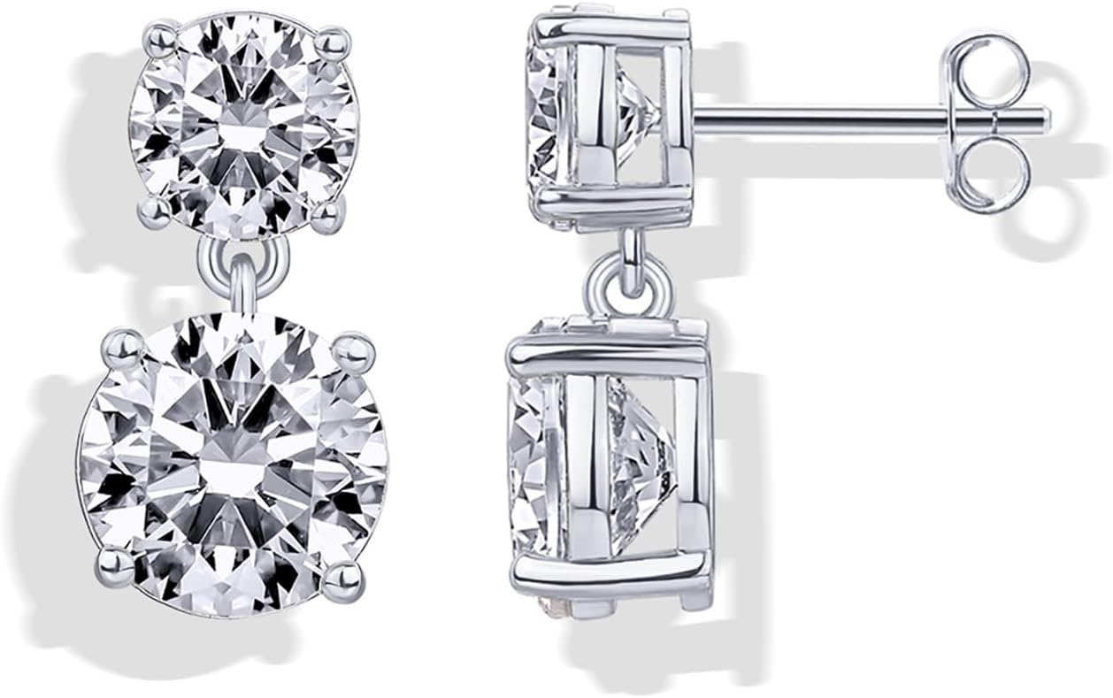 PAVOI 14K Gold Plated Cubic Zirconia Dangle Earrings for Women - Crystal Long Linear Bridal Drop Earrings - Cluster CZ Pearl Simulated Diamond Drop Dangle Wedding Jewelry for Brides & Bridesmaid