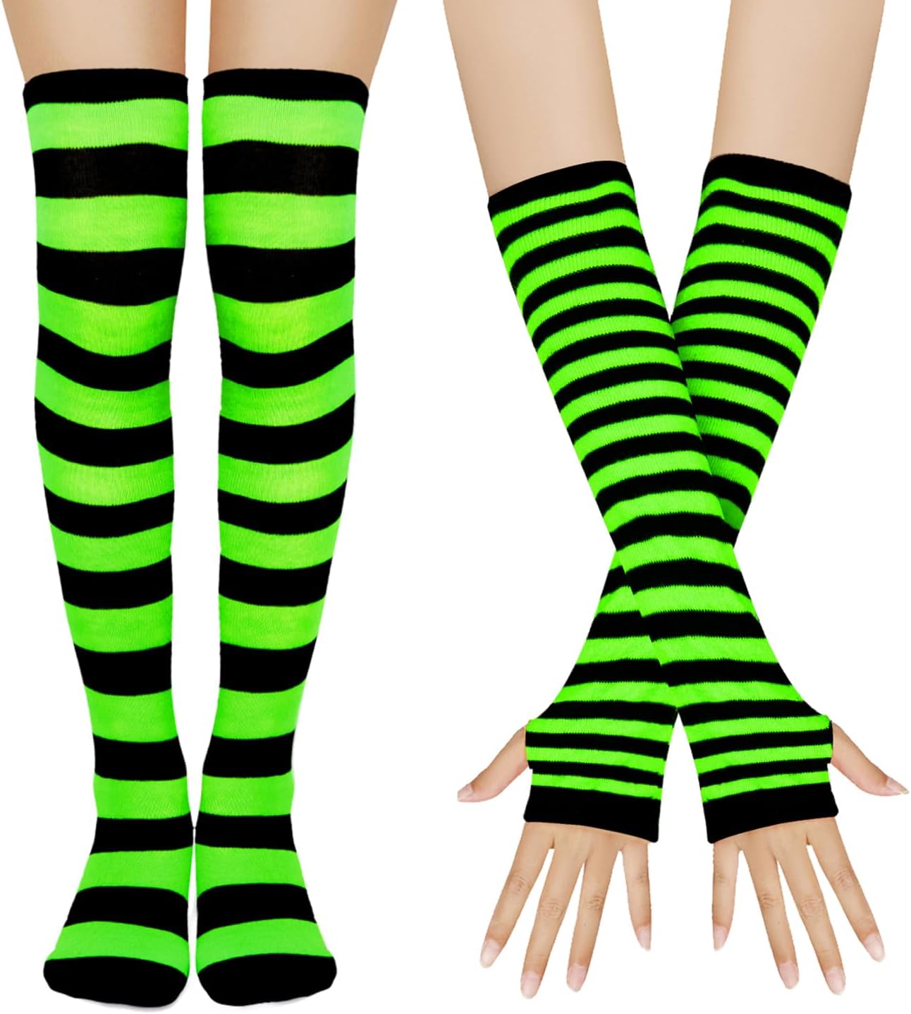 Benefeet Sox Womens Girls Striped Thigh High Socks Over Knee High Socks Leg Arm Warmer Fingerless Gloves Set Tube Costume