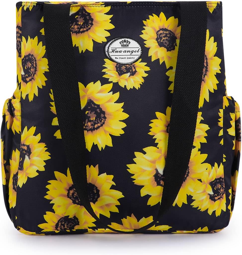 HUA ANGEL Floral Tote Bag - Casual Shoulder Bag Daily Tote Bag with Zipper Gym Travel Shopping Work Handbag for Women