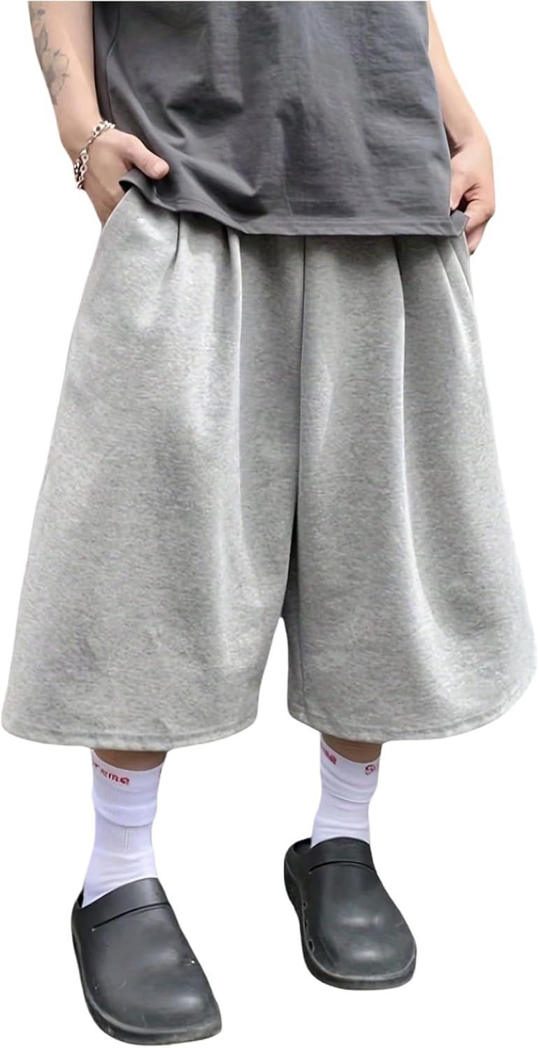 Verdusa Men's Wide Leg Baggy Athletic Shorts Workout Basketball Bermuda Shorts with Pockets
