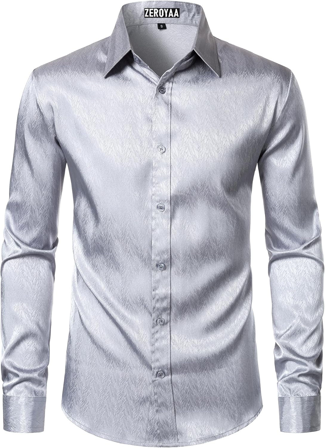 ZEROYAA Mens Shiny Satin Dress Shirts Long Sleeve Button Up Shirts for Party Prom