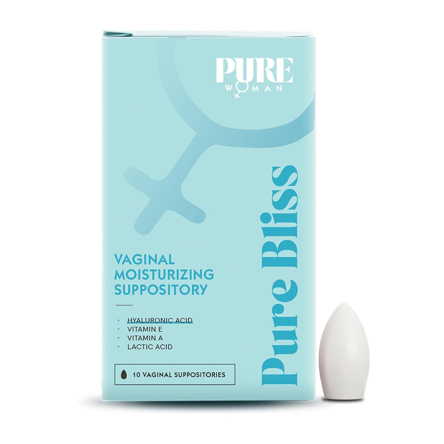 PURE WOMAN - Pure Bliss - Vaginal Moisturizing Suppositories - Hyaluronic Acid, Vitamin E, Vitamin A, Lactic Acid - Supports Vaginal Moisturization - Long Lasting Comfort & Sensitivity Relief - 10 Pk