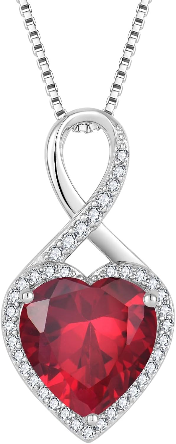FJ Infinity Necklaces for Women 925 Sterling Silver Heart Birthstone Pendant Necklace Anniversary Birthday Jewelry
