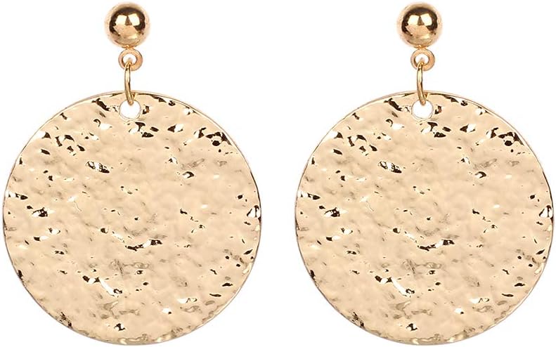 Hammered Round Disc Dangle Earrings Polished Circle Drop Earrings for Women Jewelry