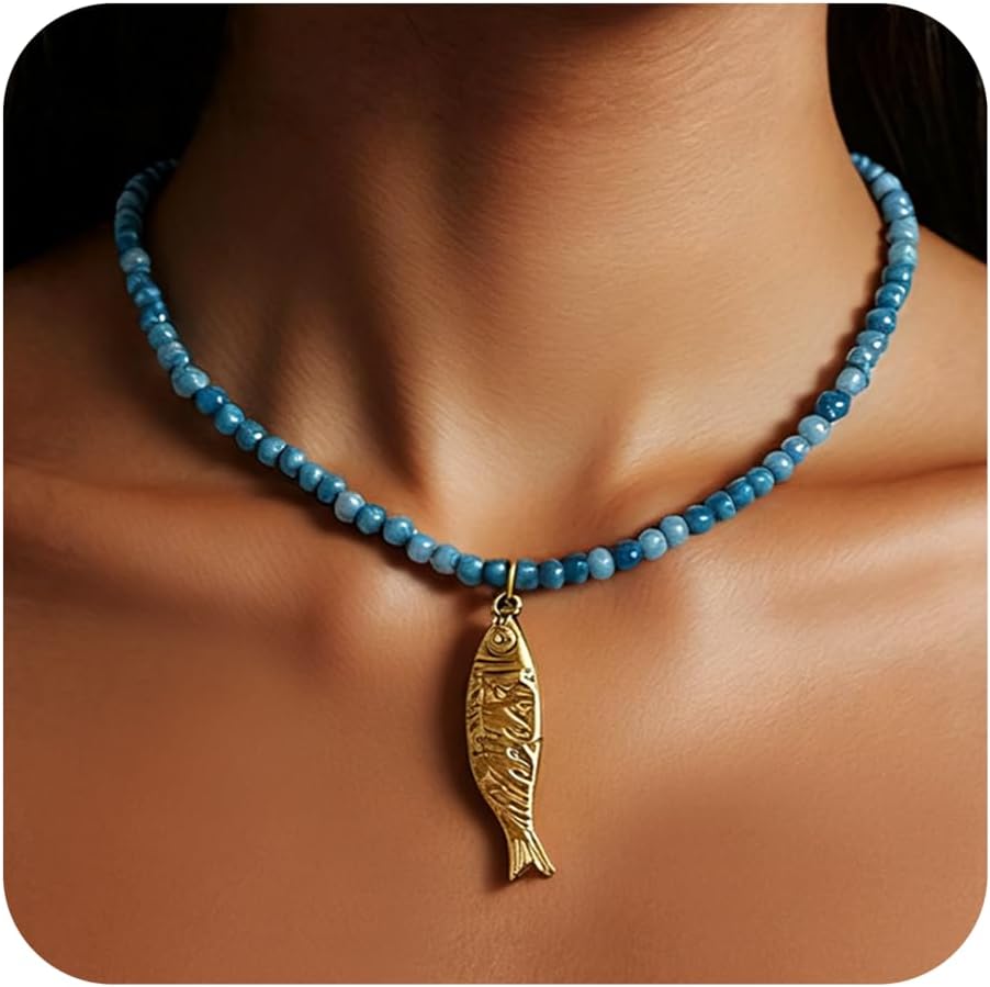 Jean Beau Beach Fish Drop Necklace for Women, Dainty 18K Gold Plated Charm Necklaces Party Fashion Jewelry Gift