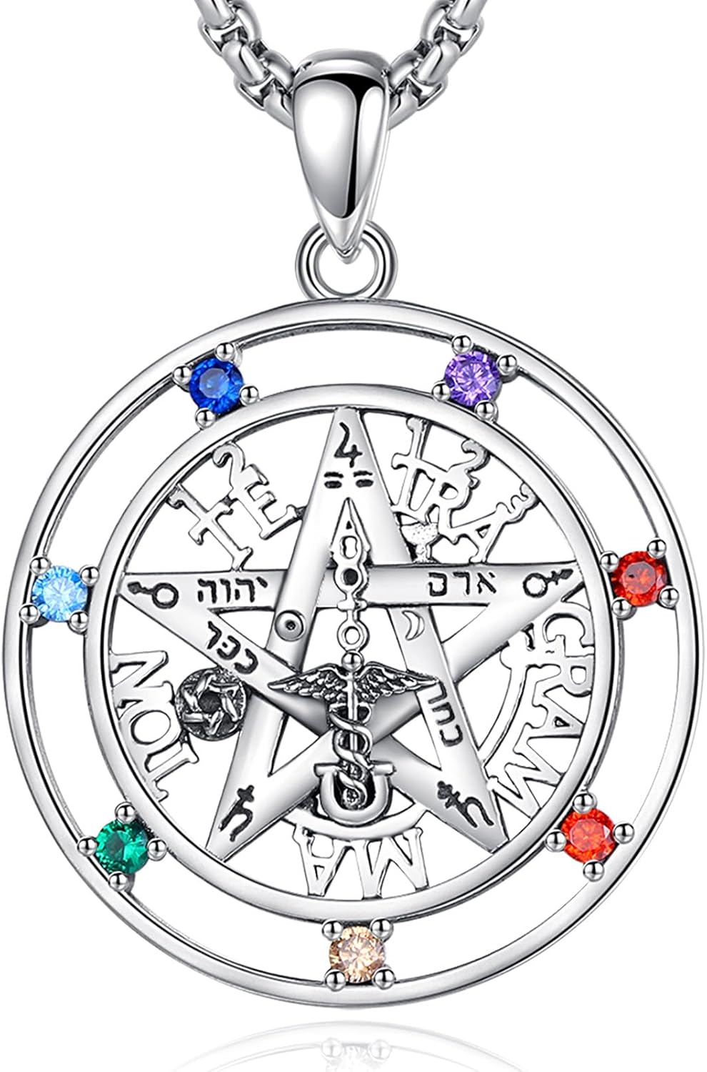 Vito Sterling Silver Tetragrammaton Necklace for Women Men, Tetragramaton Amuleto de lata 925 Necklaces Chakra Pentagram Pendant Jewelry, 24"