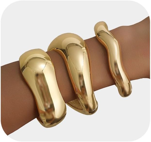 Akeoqi 3Pcs Chunky Gold Bangles Bracelets for Women 14K Gold Plated Irregular Hinged Cuff Bracelets Set Trendy Minimalist Wide Wire Twist Open Stack Bracelet Jewelry Gift