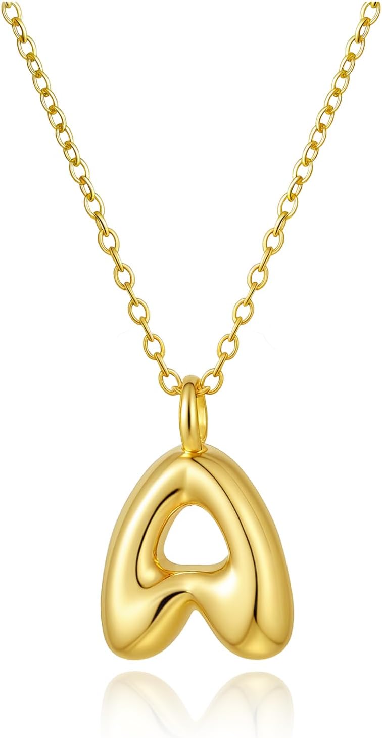 Initial Necklaces for Women, 14k Gold Plated Bubble Letter Necklace Trendy Balloon Letter Pendant Necklace Dainty Custom Personalized Name Bubble Necklaces Gold Jewelry Valentine's Day Gifts for Her