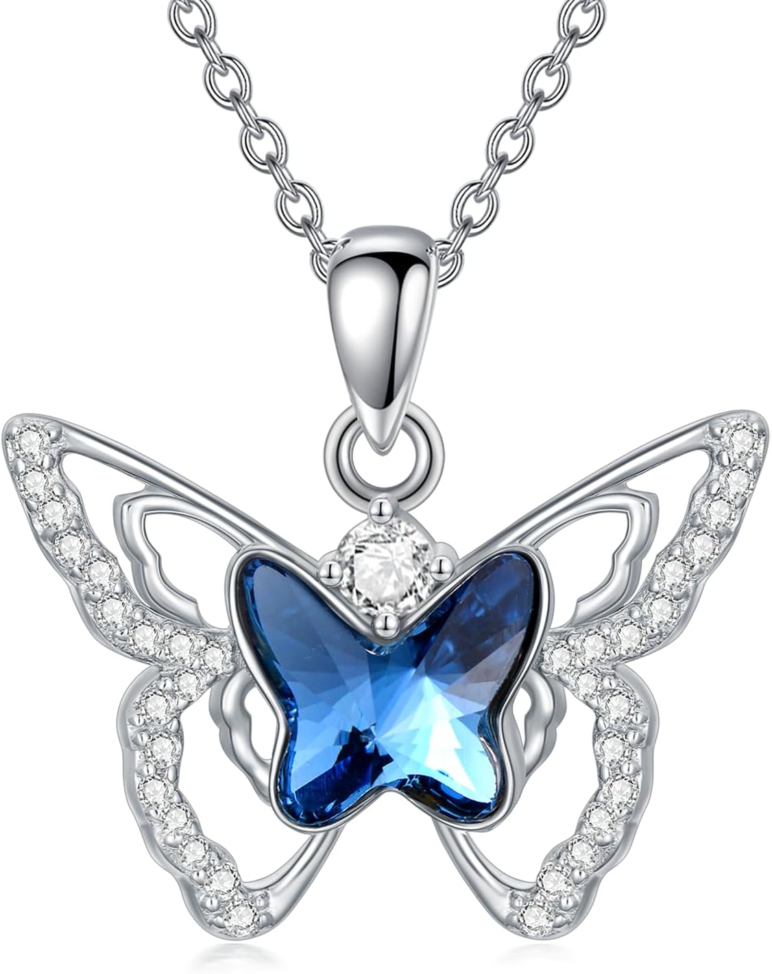 925 Sterling Silver Animal Necklace for Women, Cat/Axolotl/Butterfly/Turtle/Giraffe Pendent Necklace, Cute Animal Jewelry Gifts for Daughter Mom Sister(with Gift Box)