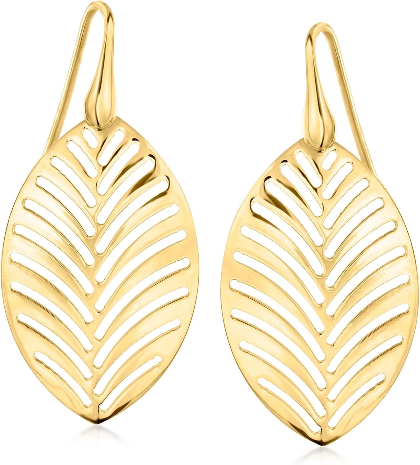 Ross-Simons Italian 18kt Gold Over Sterling Openwork Leaf Drop Earrings