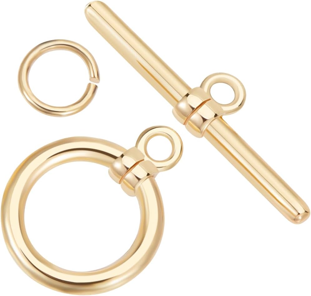 - [18K Gold Plated Toggle Clasp]: Ring toggle clasp are made of 18k gold plated brass, the golden yellow sparkles, which makes it more textured, not easy to rust or fade, won't bring burden or cause discomfort to your skin, safe and comfortable to use.