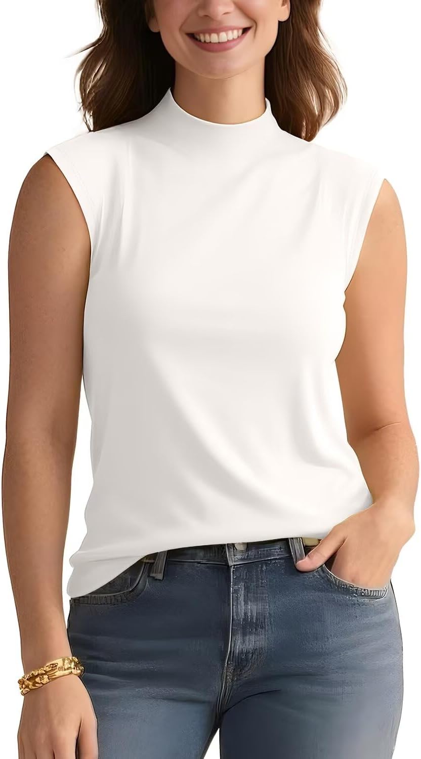 Zengjo Sleeveless Tops for Women - Mock Neck Fitted Tank Top, Ribbed Knit Layering Shirt for Work or Casual