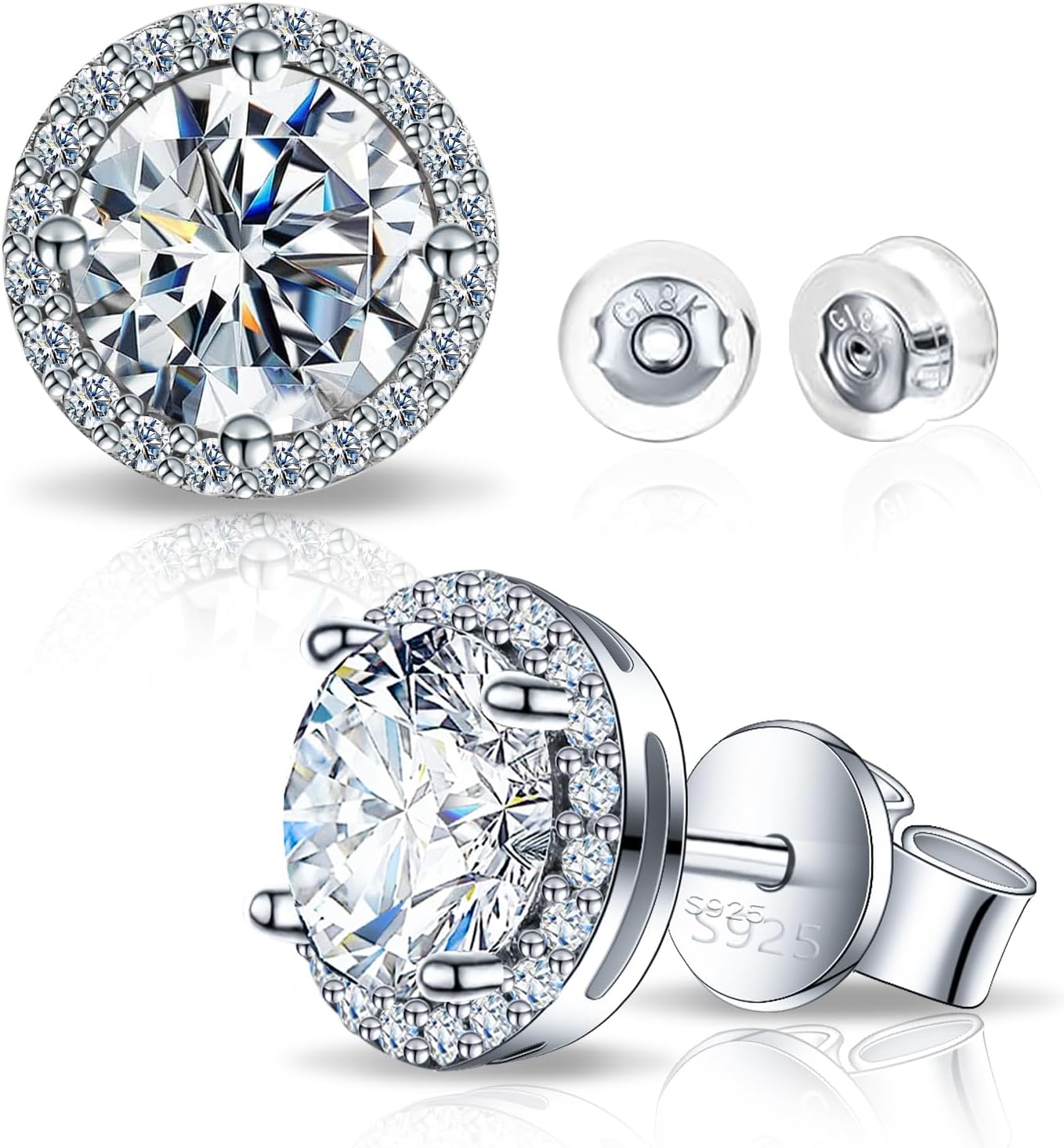 SAYATA Moissanite Halo Stud Earrings for Women & Men, Hypoallergenic 925 Sterling Silver Stud Earrings, 1.0-2.0ct