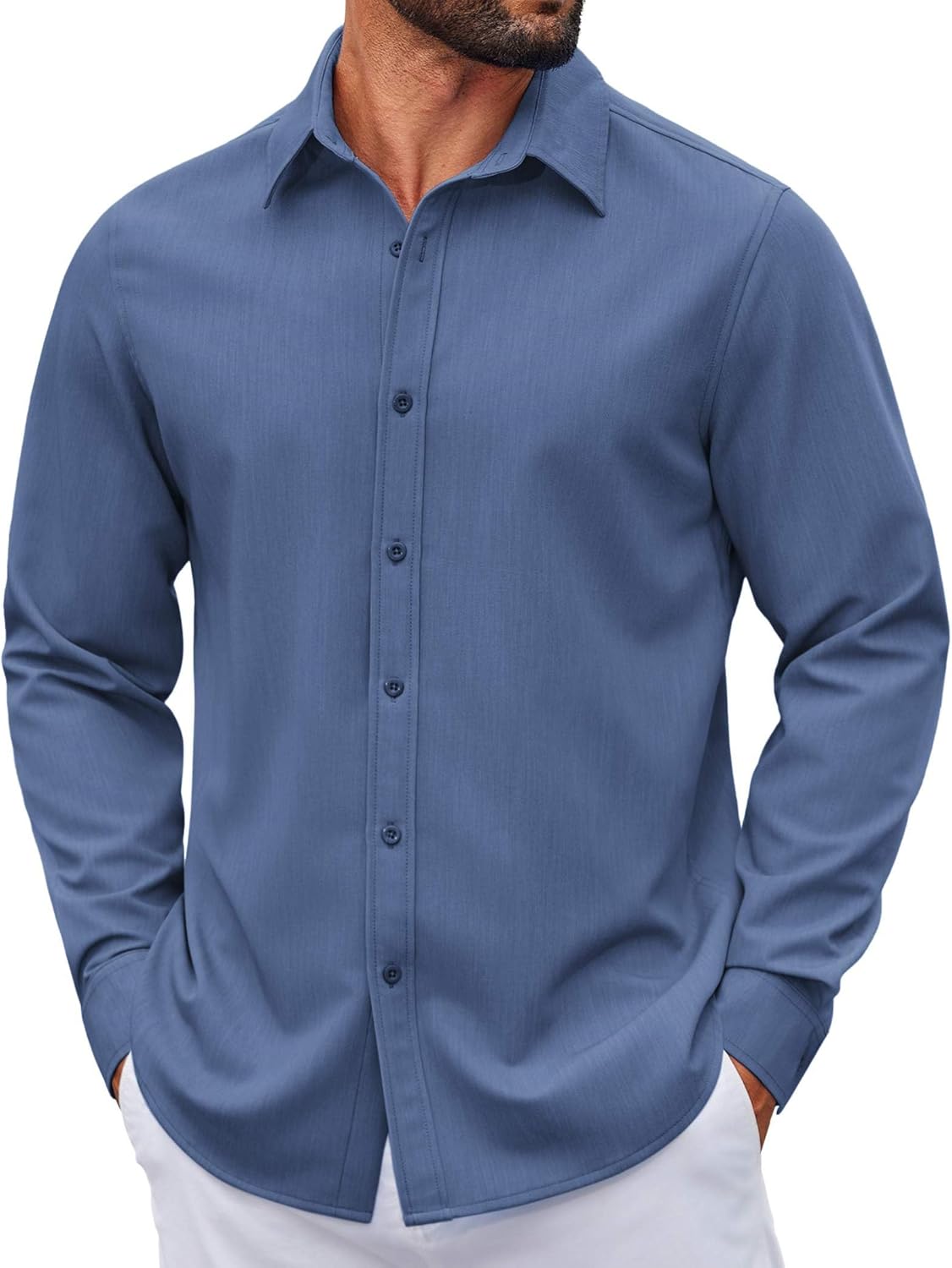 COOFANDY Men's Casual Button Down Long Sleeve Untucked Denim Dress Shirt