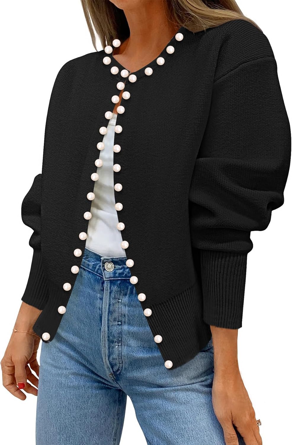 Kedera Womens Casual Pearl Cardigan 2025 Spring Elegant Embellished Long Sleeve Oversized Knit Sweater