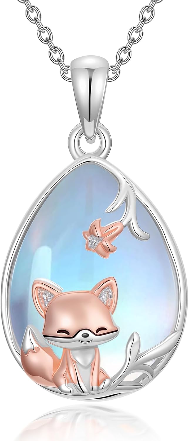 Animal Moonstone Necklace 925 Sterling Silver Fox/Cat/Butterfly/Dragonfly Pendant Necklace Animal Lovers Gifts