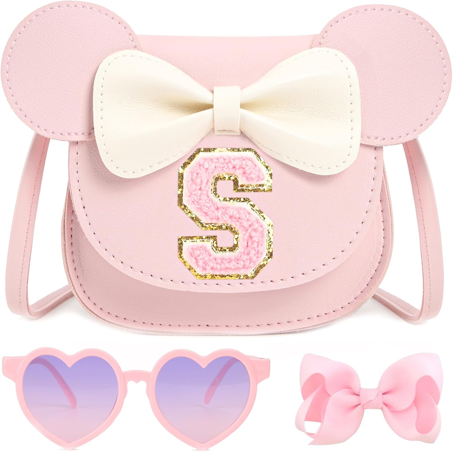 - Trendy and Practical Design: This toddler purse for kids decorated with the cute mini mouse ear and cute bow. Our purses for kids wallet also comes with 1 cute bow hair clip and 1 heart sunglasses.