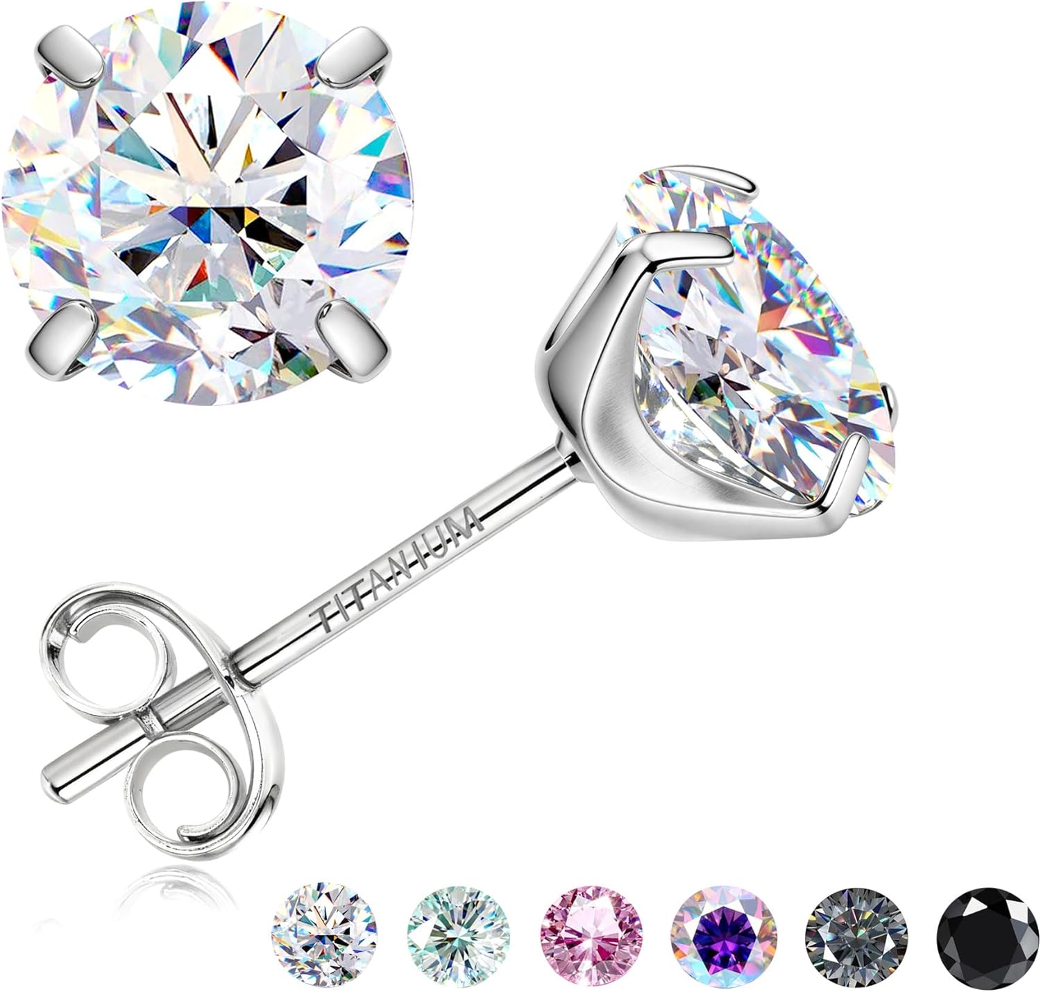 Moissanite Earrings Studs : G23 Titanium Stud Earring for Women Men Hypoallergenic Dainty Moissanite Jewelry for Sensitive Ear Round Cut Multicolor VVS1 Clarity 0.6-4CT